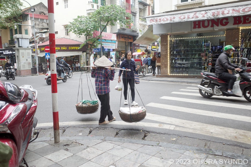 棒手振りの行商スタイルも健在だし、生肉を辻売りしているのには度肝を抜かれた。観光客相手にべらぼうに高い土産物を売りこむ人もいれば、ハノイの人を相手に青菜や果物を売る人も。一度、カフェで甘ったるいベトナムコーヒーを飲んでいたら、幼い3兄弟がやってきて私の膝の上に子猫をのせてきた。検疫的なことは大丈夫なのだろうか、と病気の不安もありつつネコの愛くるしさに負けた。撫でたり肉球をぷにぷにしたりしていると、次は長男がガムを買えという。なるほど、ネコで関心を引くのがこの兄弟の独自の商売スタイルなのかと感心させられてしまった。