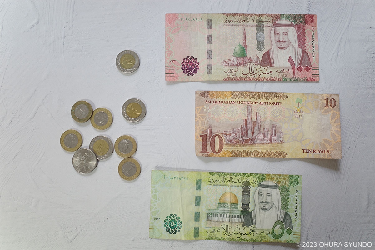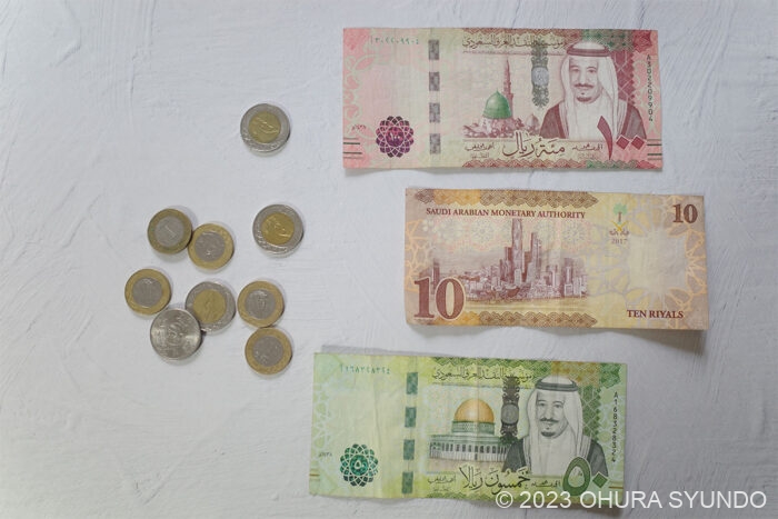 ジェッダとリヤドを旅行した3泊5日のうち、滞在したのは実質2泊3日になります。移動はUberを使用するため、決済はカードが前提。ほかにも飲食や博物館の入館料等はカードでの決済、現金はスークでの買い物時を想定していました。現地通貨は渡航前、日本円で現金5万円分を両替して持参しました。