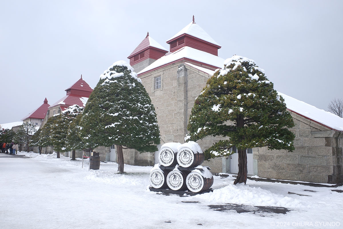 駅を降りるとすぐ目の前のロータリーを抜け、ものの数分で余市蒸留所に到着。行った日はあいにく、雪が降ったあとで路面凍結していました。雪に慣れない関東民、よたよたとペンギン歩きで向かっても5分かからずでした。