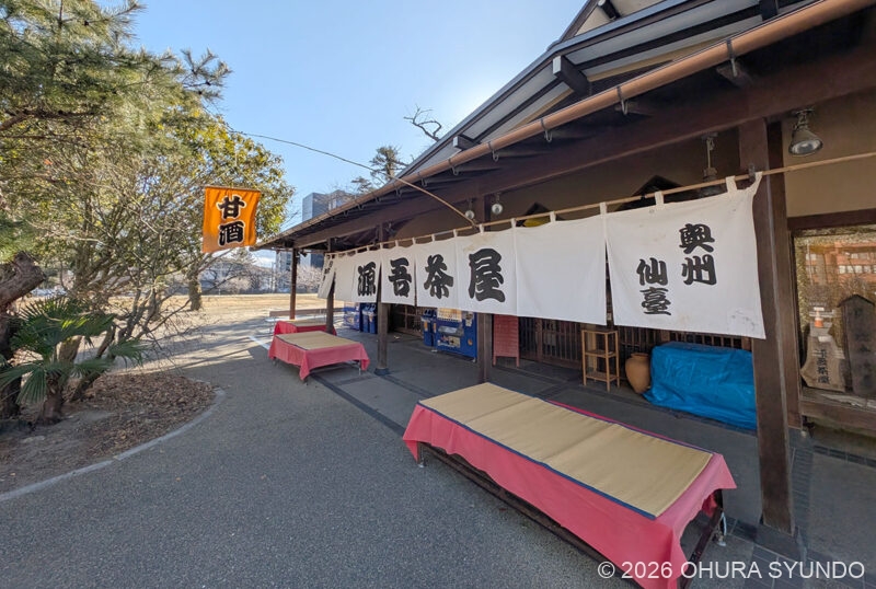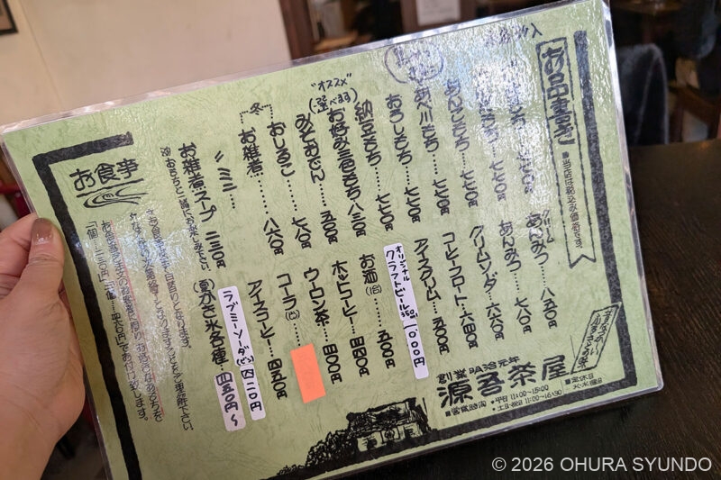 古民家風の建物が参道からも目を引く源吾茶屋。創業は明治元年と100年以上も商っていらっしゃるとか。店内はテレビの取材だけでなく、コンサートにきたタレントさんが足を運んでいるらしく、さまざまな芸能人のサインが壁いっぱいに掲示されていました。