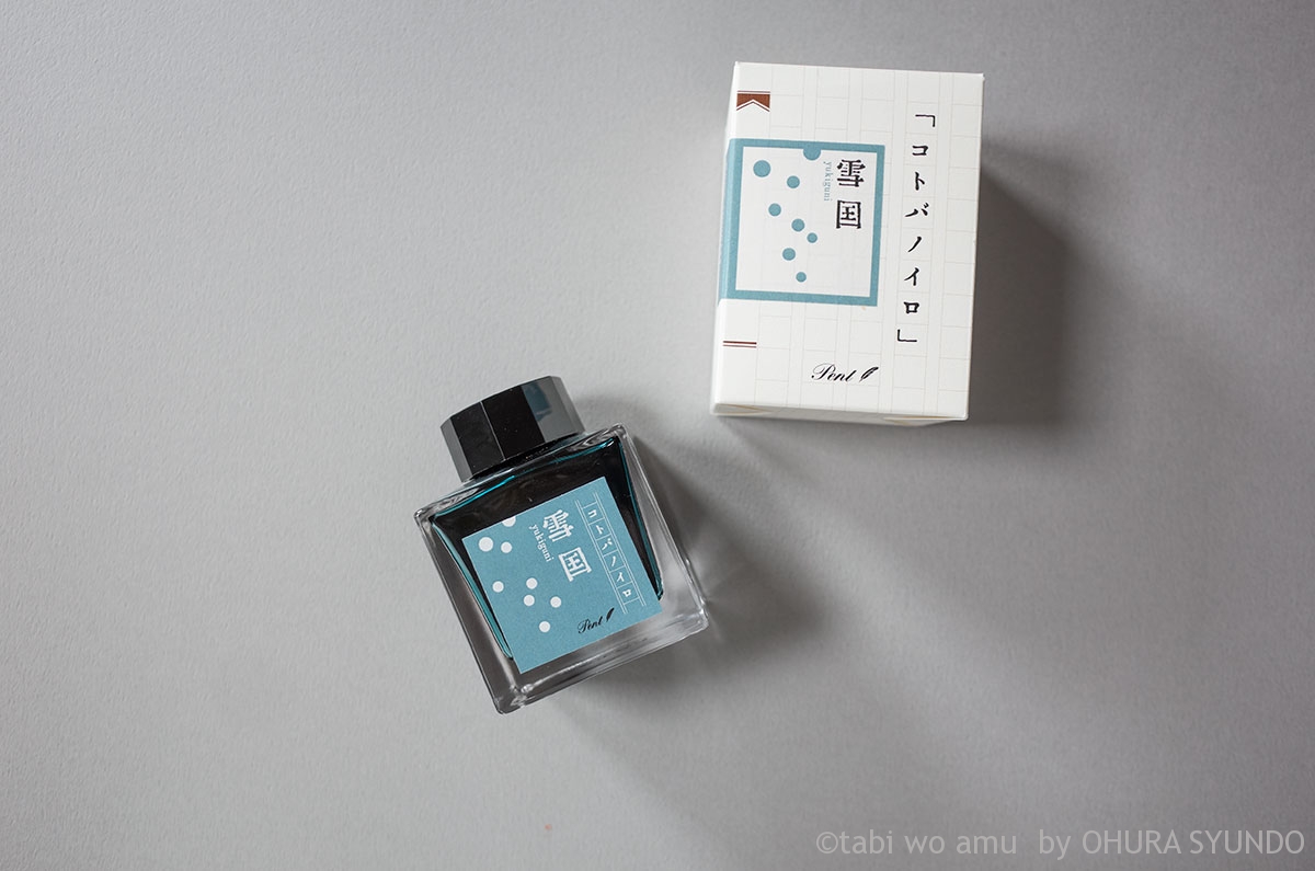 国内外の筆記具を扱う通販サイト「世界の筆記具 ペンハウス」のオリジナルインクシリーズである「コトバノイロ」。文具ライターの武田 健氏がプロデュースした、日本の近代文学をテーマにしたオリジナルインクシリーズです。17色のなかからレトロな青みがかったグレ-の「雪国」を買ったのでレビューします