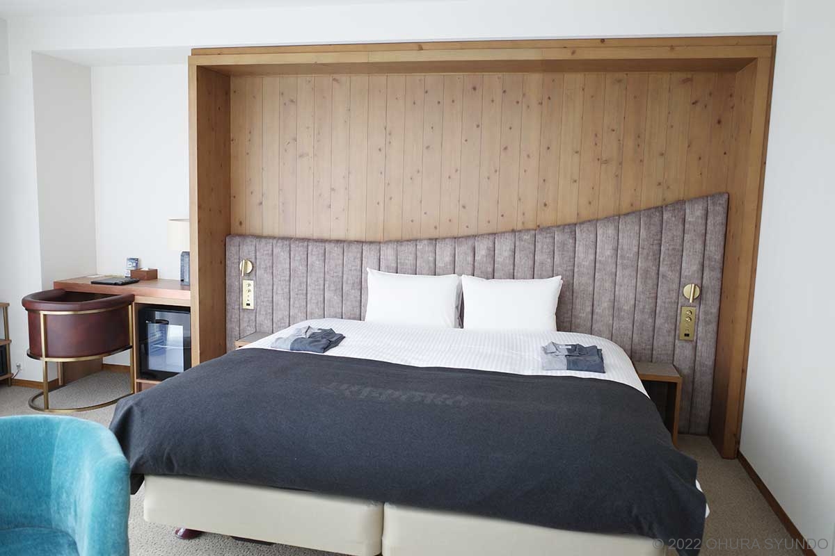 廊下とベッドルームの間には引き戸があるので、ここを閉じてしまえば自宅の寝室のように落ち着いたお部屋に。白い壁や建具なのもあって、お部屋の明るさは最高です。